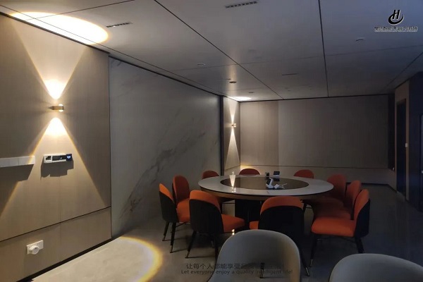 客廳區域:這是主人與家人常一起待的地方,所以根據業主的生活習慣以及喜好,設計了部分燈光場景,回家模式、明亮模式、觀影模式等